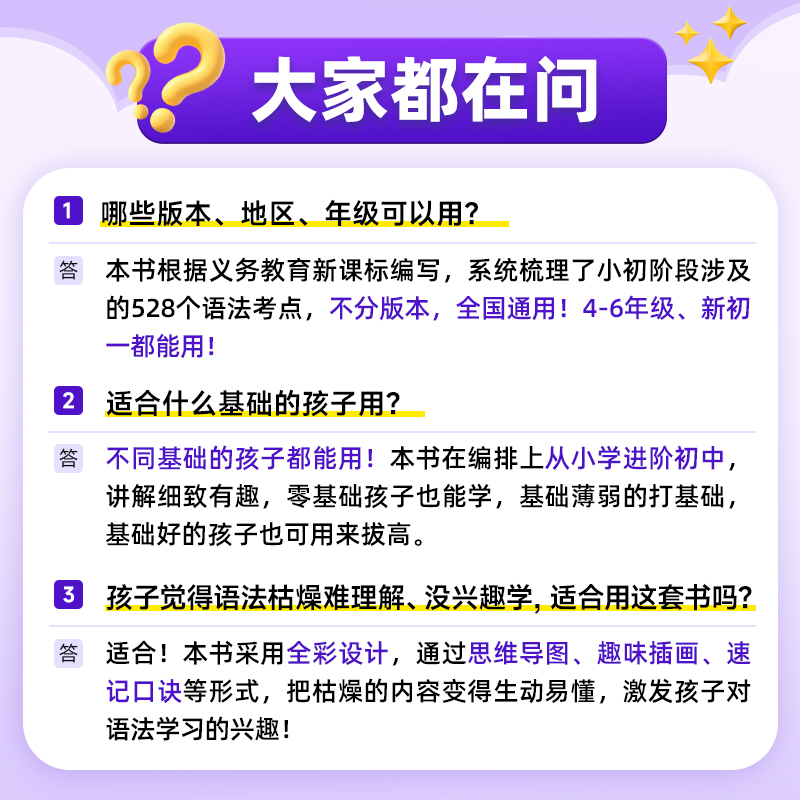 ☛语法基础薄弱、对语法学习有畏难情绪,需要易懂讲解与系统梳理的孩子。