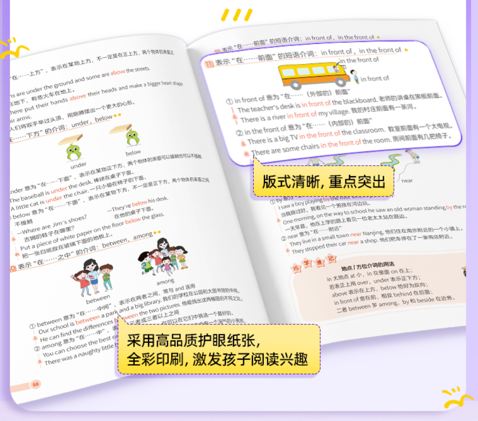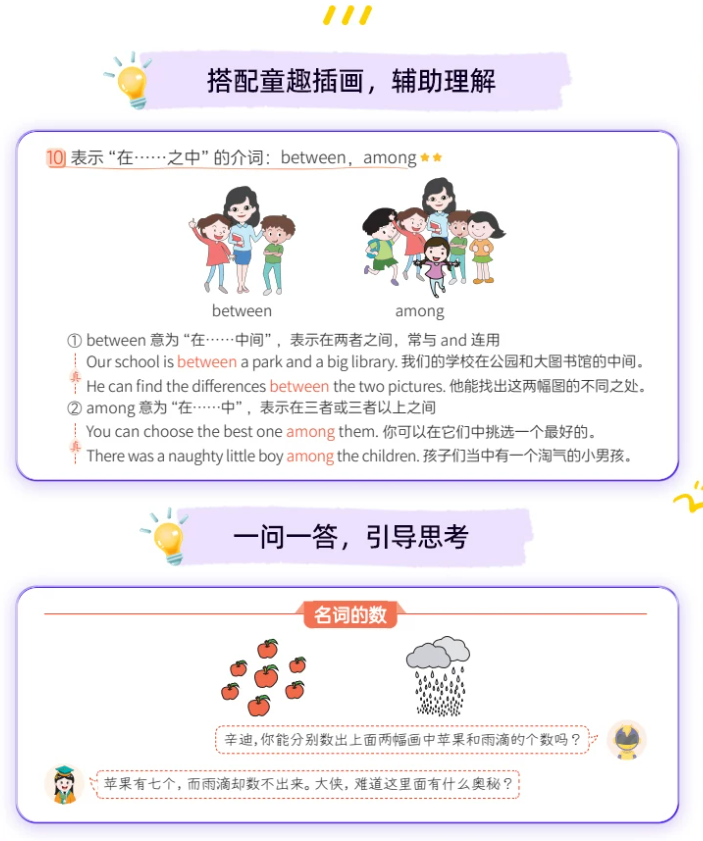 ·搭配趣味插画、对话式讲解,将抽象语法概念直观化、具象化,易于孩子理解;