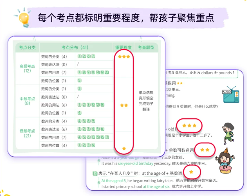 考点重要程度标注清晰,孩子可以合理规划学习任务,提升衔接备考效率。